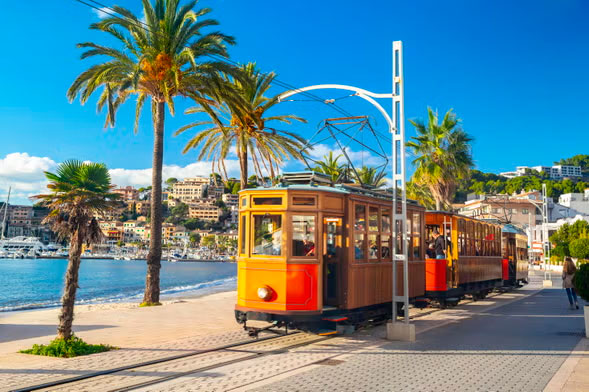 En este tour por Mallorca desde la zona sur daremos la vuelta a gran parte de su perímetro. En este inolvidable recorrido viajaremos en autobús, barco, tren y tranvía por la isla más grande de las Baleares.